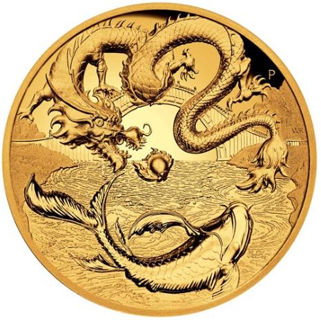 2023年 澳大利亚 中国神话传说龙与锦鲤 100澳元 1盎司 超高浮雕 精制金币